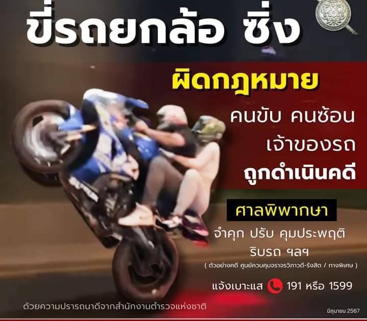 ผิดกฎหมาย คนขับ คนซ้อน เจ้าของรถ ถูกดำเนินคดี