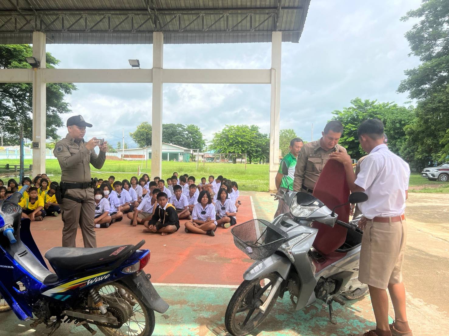 วันที่ 17 ก.ค.67 เวลา 13.00 น. พ.ต.ท.วีระวุฒิ ทองวัน สว.สภ.ดงป่าคำ มอบหมายให้ ร.ต.อ.วิชัย ปัจจากุล รอง สวป.สภ.ดงป่าคำ พร้อมชุดชุมชนสัมพันธ์ RTP cyber village สภ.ดงป่าคำ ร่วมบรรยายให้ความรู้เกี่ยวกับภัยอันตรายและโทษของบุหรี่ไฟฟ้า และความรู้เกี่ยวกับ พ.ร.บ.จราจร ตรวจสอบรถจักรยานยนต์ดัดแปลงสภาพ ท่อเสียงดัง อุปกรณ์ไม่ถูกต้องตามกฎกระทรวง ตามโครงการ เปิดโรงเรียน เปิดโรงรถให้กับคณะครู นักเรียน โรงเรียนวัดดงกลาง ณ โรงเรียนวัดดงกลาง ต.ดงกลาง อ.เมืองพิจิตร จ.พิจิตร
