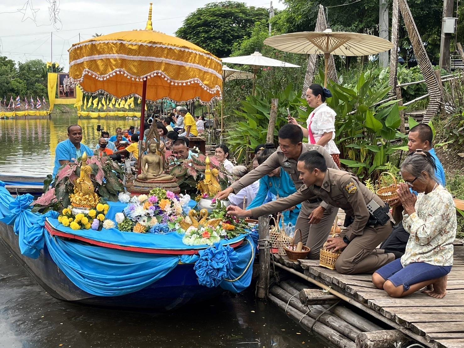 ร่วมประเพณีตักบาตรทางน้ำ 12 สิงหาคม 2567 โดย admin / ข่าวภารกิจผู้บังคับบัญชา วันที่( 12 ส.ค.67 ) เวลา 06.30 น.พ.ต.ท.วีระวุฒิ ทองวัน สว.สภ.ดงป่าคำ มอบหมายให้ ร.ต.อ.วิชัย ปัจจากุล รอง สวป.สภ.ดงป่าคำ พร้อมด้วย ข้าราชการตำรวจ สภ.ดงป่าคำ ร่วมประเพณีตักบาตรทางน้ำ ณ วัดดงกลาง ต.ดงกลาง อ.เมือง จ.พิจิตรเนื่องในโอกาสวันเฉลิมพระชนมพรรษาสมเด็จพระบรมราชชนนีพันปีหลวงฯ FacebookFacebookXXLINELine