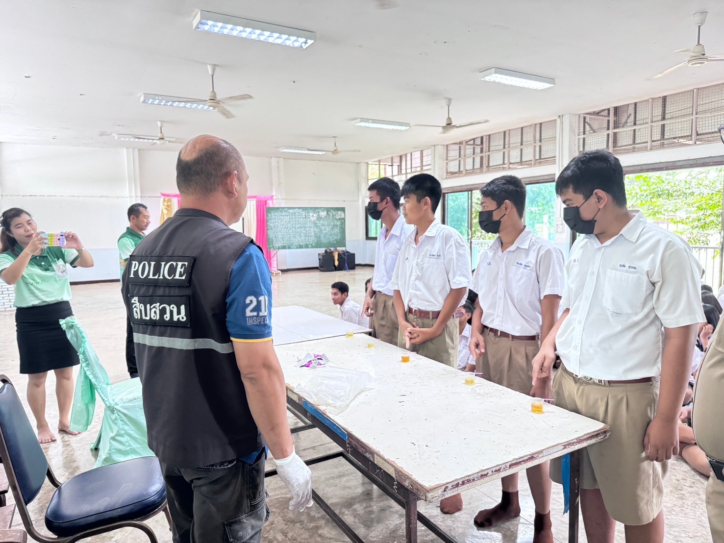 ตรวจปัสสาวะหาสารเสพติดนักเรียนในสถานศึกษา 25 กันยายน 2567 โดย admin / ข่าวภารกิจผู้บังคับบัญชา วันที่( 25 ก.ย. 67 ) เวลา 13.00 น. ภายใต้การอำนวยการโดย พ.ต.ท.วีระวุฒิ ทองวัน สว.สภ.ดงป่าคำ มอบหมายให้ ร.ต.อ.หมาย พุ่มเพ็ชรษา รอง สว.สส.สภ.ดงป่าคำ, ร.ต.ท.สุทัศน์ ใจจำนงค์ รอง สว.(สส)ฯ พร้อมชุดชุมชนสัมพันธ์สภ.ดงป่าคำ ร่วมกับโรงเรียนวัดดงกลาง ตรวจปัสสาวะหาสารเสพติดนักเรียนในสถานศึกษา และให้ความรู้เกี่ยวกับบุหรี่ไฟฟ้า ณ ห้องประชุมโรงเรียนวัดดงกลาง ต.ดงกลาง อ.เมือง จ.พิจิตร FacebookFacebookXXLINELine