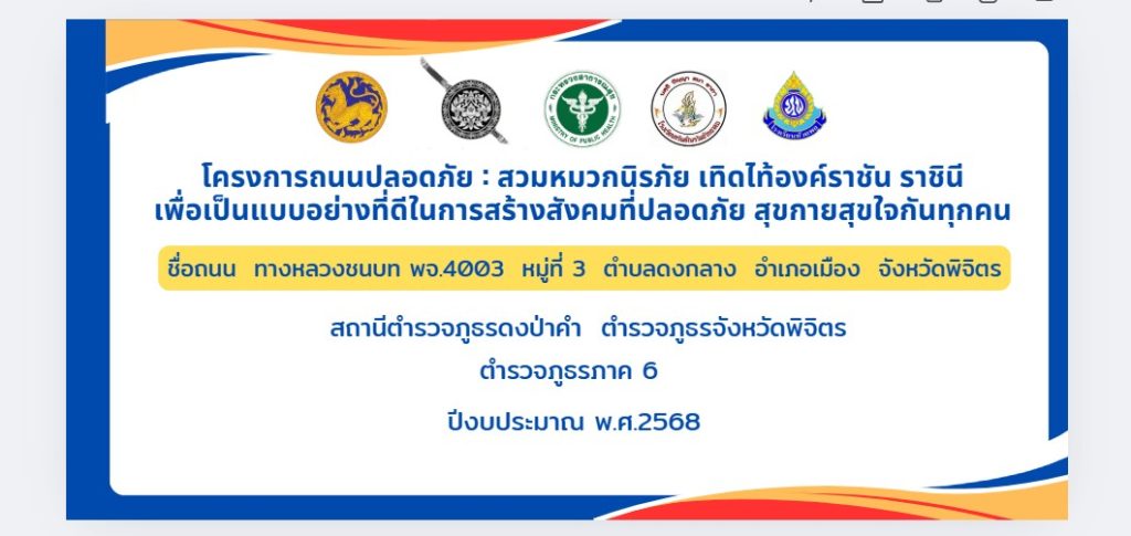 ประชาสัมพันธ์โครงการ “ถนนปลอดภัย สวมหมวกนิรภัย เทิดไท้องค์ราชันราชินี เป็นแบบอย่างที่ดี ในการสร้างสังคมที่ปลอดภัย สุขกายสุขใจทุกคน”