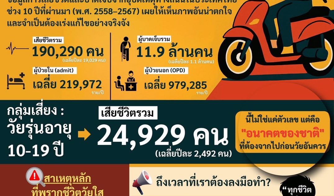 ðāļāđāļāļĄāļđāļĨāļāļēāļĢāđāļŠāļĩāļĒāļāļĩāļ§āļīāļāđāļĨāļ°āļāļēāļāđāļāđāļāļāļēāļāļāļļāļāļąāļāļīāđāļŦāļāļļāļāļēāļāļāļāļāđāļāļāļĢāļ°āđāļāļĻāđāļāļĒāļāđāļ§āļ 10 āļāļĩāļāļĩāđāļāđāļēāļāļĄāļē (āļ.āļĻ. 2558-2567) āđāļāļĒāđāļŦāđāđāļŦāđāļāļ āļēāļāļāļĩāđāļāđāļēāļāļāđāļāđāļĨāļ°āļāļ§āļĢāđāļāđāļĢāļąāļāļāļēāļĢāđāļāđāđāļāļāļĒāđāļēāļāđāļĢāđāļāļāđāļ§āļ āđāļāļāđāļ§āļāđāļ§āļĨāļēāļāļąāļāļāļĨāđāļēāļ§ āļĄāļĩāļāļđāđāđāļŠāļĩāļĒāļāļĩāļ§āļīāļāļĢāļ§āļĄāļāļąāđāļāļŠāļīāđāļ 1.9 āđāļŠāļāļāļ āļāļīāļāđāļāđāļāļāđāļēāđāļāļĨāļĩāđāļĒāļāļĩāļĨāļ° 19,029 āļāļ āļāļāļ°āļāļĩāđāļāļđāđāļāļēāļāđāļāđāļāļĄāļĩāļāļģāļāļ§āļāļŠāļđāļāļāļķāļ 11.9 āļĨāđāļēāļāļāļ āđāļāļĨāļĩāđāļĒāļāļĩāļĨāļ° 1.1 āļĨāđāļēāļāļāļ āđāļāļĒāđāļāļāļģāļāļ§āļāļāļĩāđāļĄāļĩāļāļđāđāļāđāļ§āļĒāļŦāļāļąāļāļāļĩāđāļāđāļāļāđāļāđāļēāļĢāļąāļāļāļēāļĢāļĢāļąāļāļĐāļēāđāļāđāļĢāļāļāļĒāļēāļāļēāļĨ (admit) āđāļāļĨāļĩāđāļĒ 219,972 āļĢāļēāļĒāļāđāļāļāļĩ āđāļĨāļ°āļāļđāđāļāđāļ§āļĒāļāļāļ (OPD) āđāļāļĨāļĩāđāļĒ 979,285 āļĢāļēāļĒāļāđāļāļāļĩ