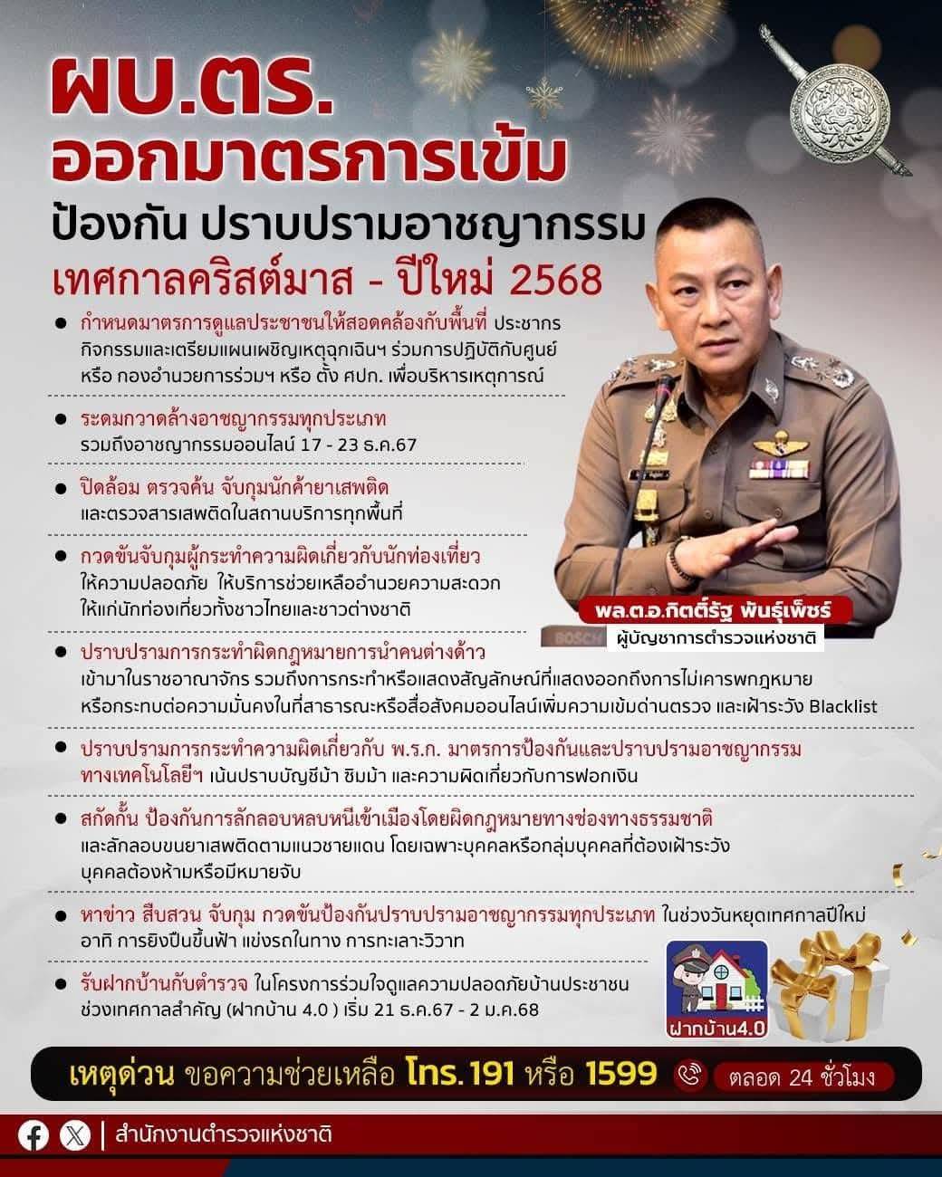 พล.ต.อ.กิตติ์รัฐ พันธุ์เพ็ชร์ ผู้บัญชาการตำรวจแห่งชาติ มีข้อสั่งการ ให้บังคับใช้กฎหมายอย่างเคร่งครัด