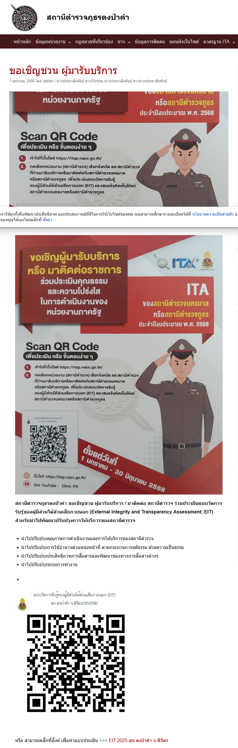 (Integrity and Transparency Assessment: ITA) ของสถานีตำรวจประจำปีงบประมาณ พ.ศ. 2567